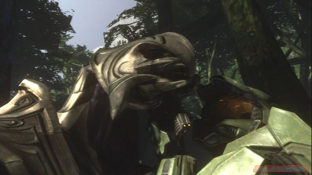 {Gameplay endet} Der Chief sieht sich die Umgebung an. Er erkennt etwas bekanntes in der Nähe... man sieht den bekannten Hitzeeffekt einer Allianz-Tarnausrüstung. Ein Elite enttarnt sich, es gibt sich der Gebieter, Thel 'Vadam, zu erkennen. Der Master Chief schlängelt sich durch die Gruppe. Er stößt einen der Marines weg und greift nach Johnsons Pistole im Schaft.