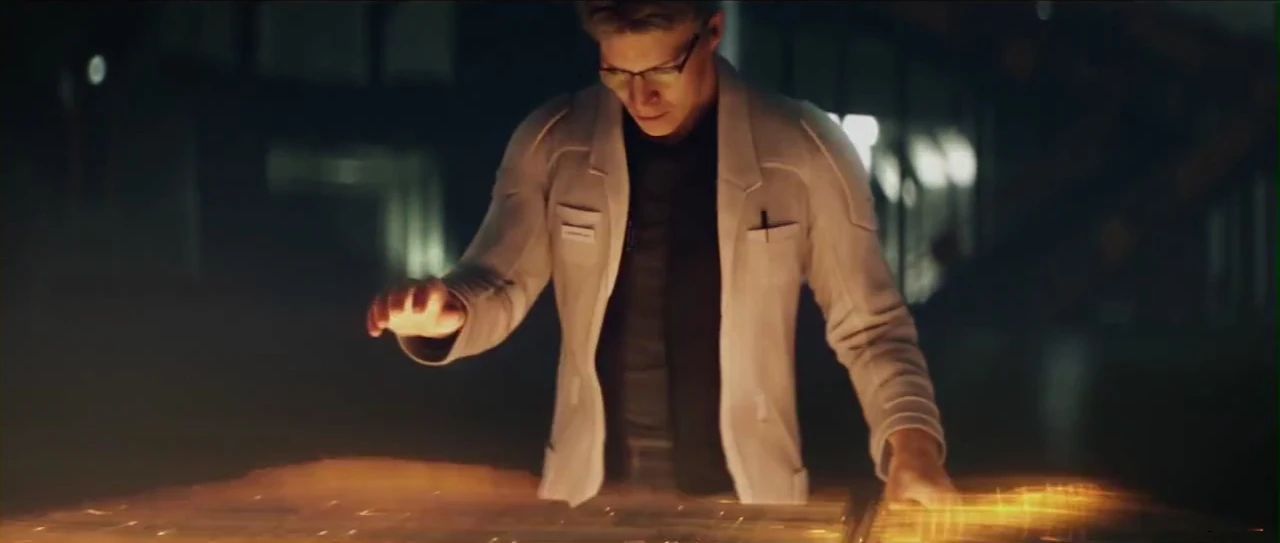 Glassman berührt es erneut, was einen stärkeren Impuls zur Folge hat. Plötzlich aktiviert es sich noch mal und Glassmans Hand beginnt orange zu leuchten.