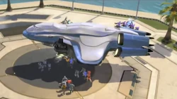Ein Cargo Transporter während der Evakuierung von Algolis.