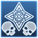 Der Erfolg wird durch einen Orden und zwei Totenköpfen dargestellt.