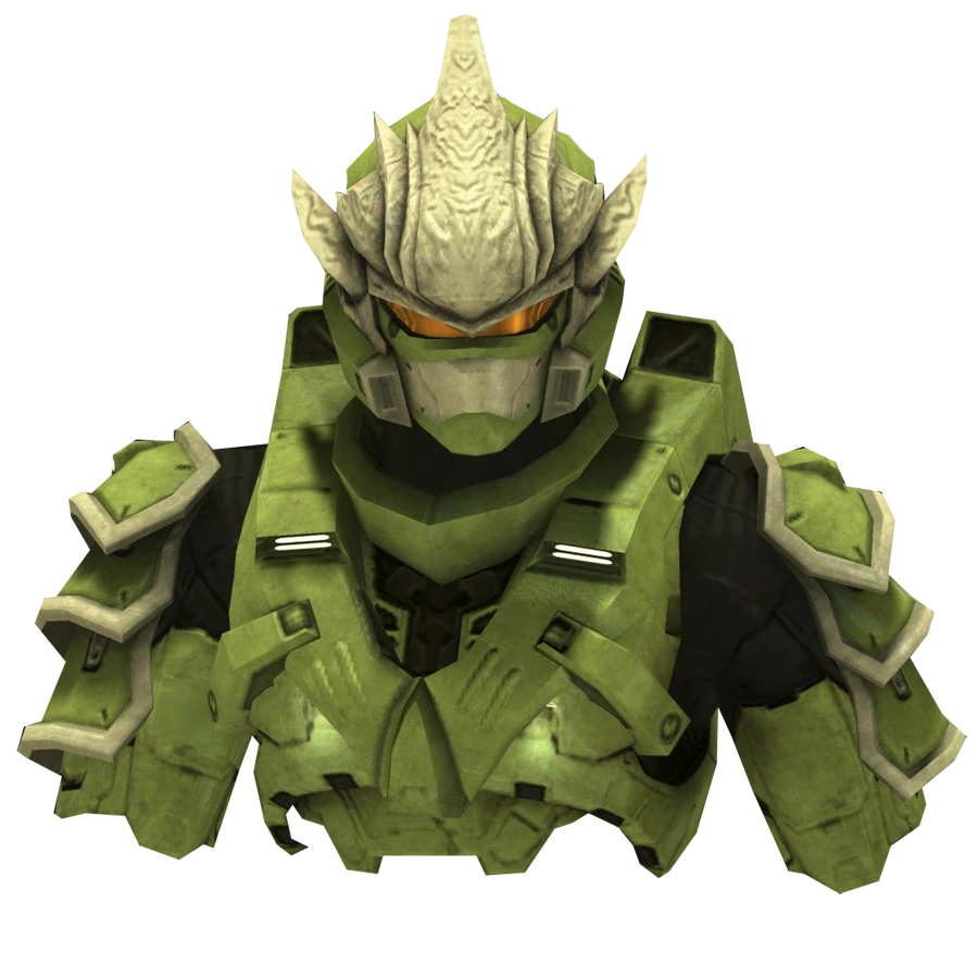 Der Helm der Rüstung zeichnet sich vor allem durch sein sehr kleines Visier aus. Er hat auch sieben von ihm ausgehende eckige Spitzen. Die bei jeder Rüstungsfarbe silbern bleiben. Der hintere Teil des Helms ist von einem Starken Nackenschutz geprägt.