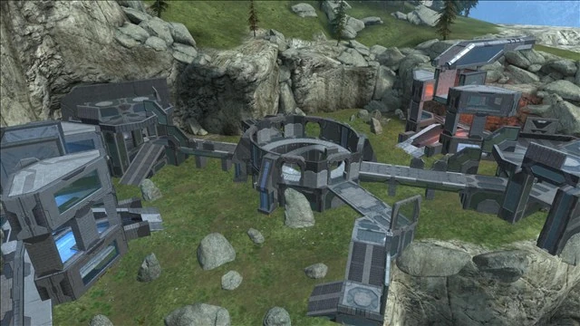 En medio se ubica una estructura circular de dos pisos conectados por dos escaleras circulares con seis salidas en el piso superior, dos en el inferior; con una Espada de Energía y dos Aguijoneadores. El mapa es muy estratégico y especialmente creado para Gameplay con Mochila Cohete o Bloqueo de Armadura. Es un mapa muy bueno para CLB Pro o Asesino por Equipos. El mapa tiene varias Rocas muy grandes para tener Cobertura, y una Rampa de Cada lado dónde hay un Rifle Aguijón.