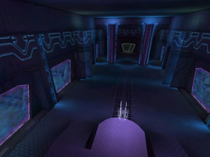 Questi controlli sono probabilmente per i sistemi antincendio, di navigazione, sensori, diagnostica della nave, monitor della sicurezza interna, etc. Di fronte al centro di comando vi è un grande "banner" olografico che viene utilizzato per la navigazione.