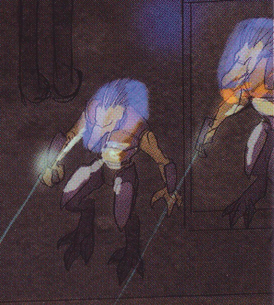 Kig-yar have features similar to birds of prey as well as reptiles. Their legs are sinewy and muscular, and are reverse-jointed in a similar fashion to birds. They have sharp claws on both hands and feet. Being carnivores, their sharp beaks are lined with rows of razor-sharp teeth; some have far more numerous teeth which bear a passing resemblance to baleen.[6] Kig-yar have been known to eat the flesh of fallen enemies, as well as live prisoners. Kig-yar have extraordinary senses of sight, hearing, and smell. Male Kig-yar possess plumages of spiny quills at the back of the head and on the elbows; the color of this plumage indicates the Kig-yar's mood.[7] Females lack these quill plumages, instead having calloused plates at the forearms and the rear of the head. This thick skin helps protect the female during courtship: when mating, the male will often bite, chew, and tear on the back of the female's head, neck, and arms. Kig-yar reproduce by laying eggs which the female incubates, similar to birds. When mating, the male can choose to fertilize the egg, in which a male is produced, whereas, if the eggs are not fertilized, a female is produced. This may imply that Kig-yar have the ability to reproduce without mating.