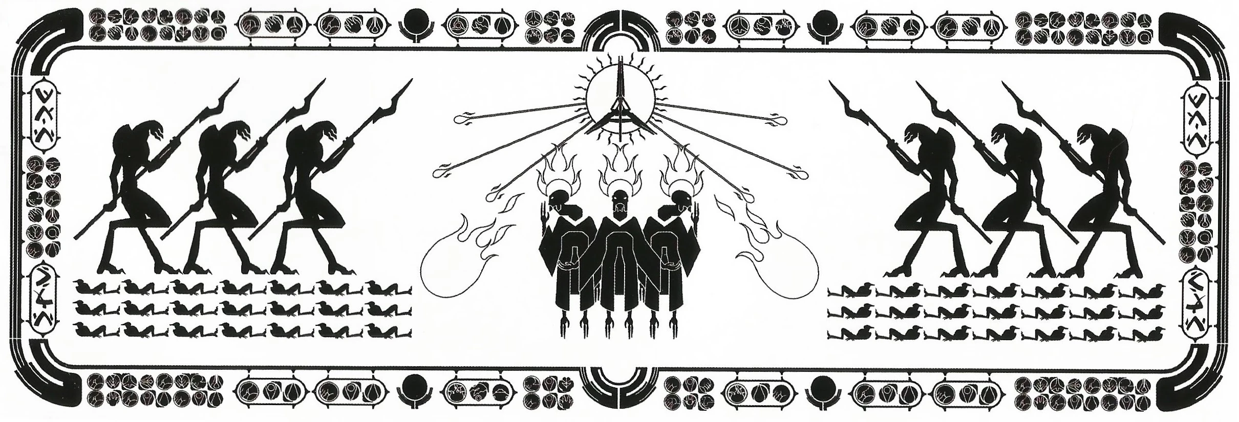 Покинув свой родной мир в 2 100 году до н. э., в 938 году до н. э. сан 'шайуум столкнулись с сангхейли, которые также имели опыт в использовании технологий Предтеч. Сан 'шайуум ошибочно решили, что использование технологий Предтеч не воспрещается их религией. Но для сангхейли подобное являлось немыслимой ересью.