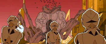 - “Сто тысяч лет назад в этой вселенной существовала великая цивилизация. Как и все великие цивилизации, их внезапно постигла большая катастрофа. Внешняя угроза их величию. То, чего они не ожидали, к чему они не были готовы — инопланетная инфекция, которую они назвали просто Потоп.”