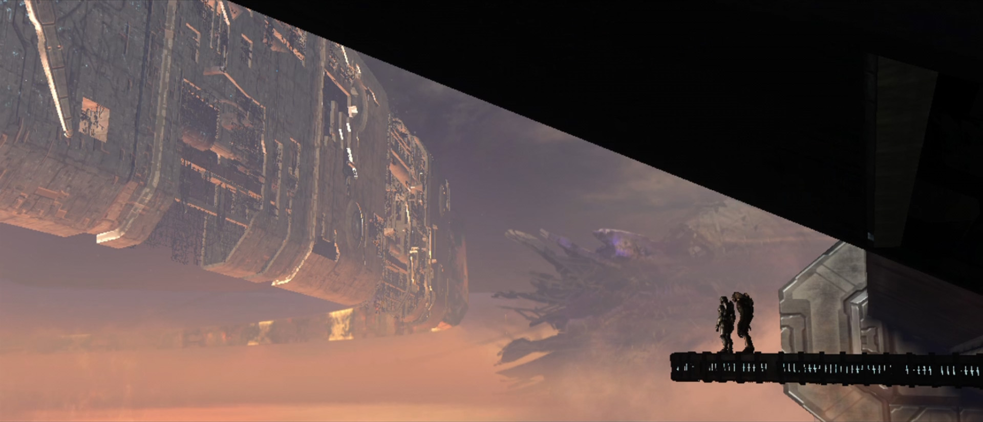 Перед ним начинает открываться обзорное окно, и вместе с 'Вадамом Спартанец выходит на балкон, с которого открывается вид на ядро Ковчега. Из тумана под ними поднимается сооружение громадных размеров. Через несколько секунд становится ясно, что это — самый настоящий Ореол, ещё даже не достроенный полностью. Намерения Кортаны становятся очевидными.