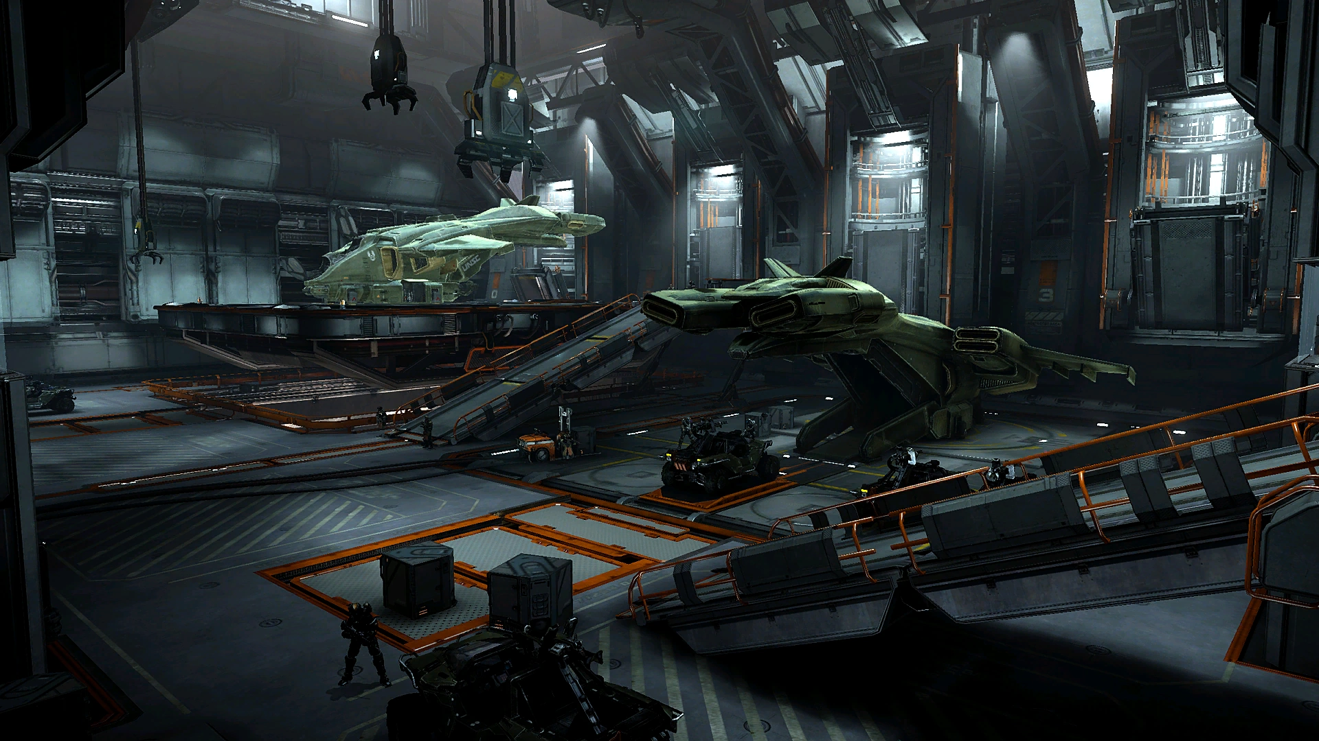 Спартанец-IV идет по ангарному отсеку.