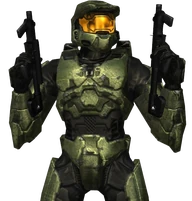 Спартанец с двумя пистолетами-пулеметами в Halo 2.