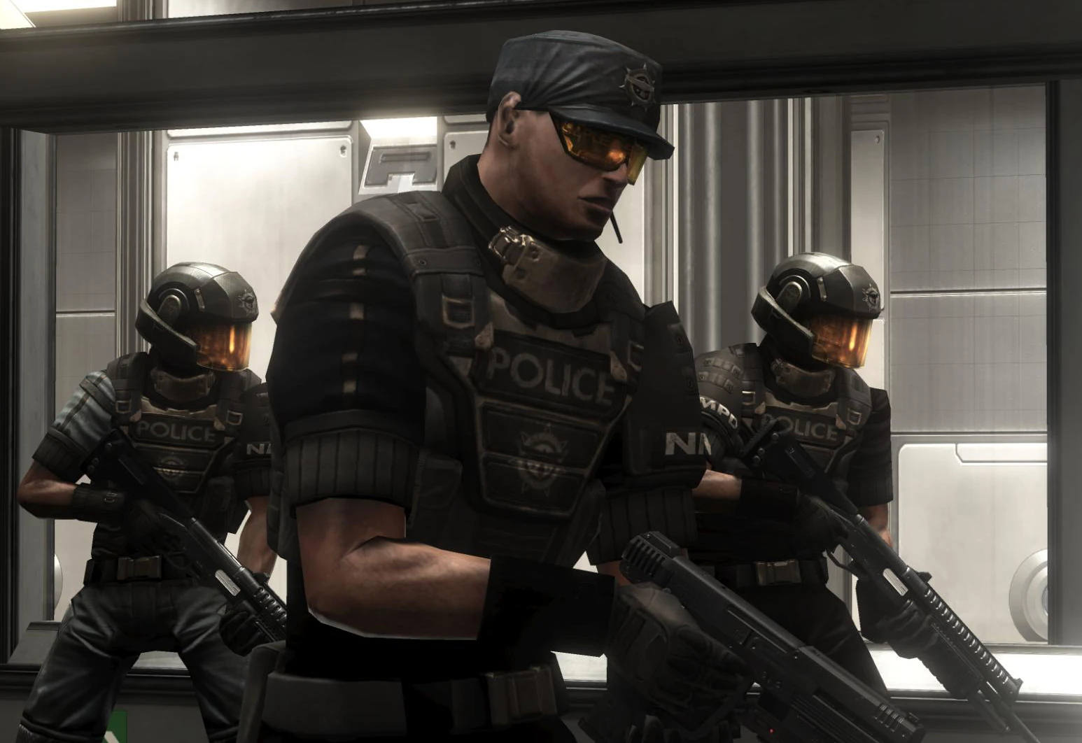 Стандартный комплект одежды для служащего ПДНМ составляет униформа черного цвета, бронежилет и модернизированный сталепластиковый шлем CH252 с зеркальным лицевым щитком. Их вооружение составляют такое оружие, как штурмовая винтовка MA5C ICWS, дробовик M90A, пистолет-пулемет M7/Складной, а также боевая винтовка BR55HB SR. Также в полицейском спецотряде SWAT часто используются ослепляющие гранаты.