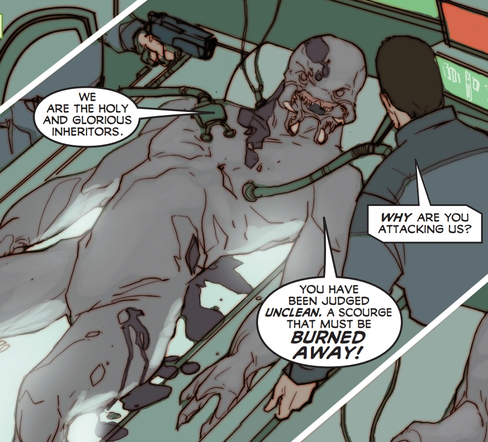 Ковенант оставил преследование "Индии" и направился навстречу "Эвересту". Коул вошел в гравитационное поле Гадюки, зная, что не сможет вернуться. Ковенант открыл огонь по кораблю Коула, однако, магнитосфера[16] газового гиганта вызвала неполадки в работе плазменных орудий Ковенанта и ему удалось пережить залп. Коул обратился к Ковенанту в последний раз: