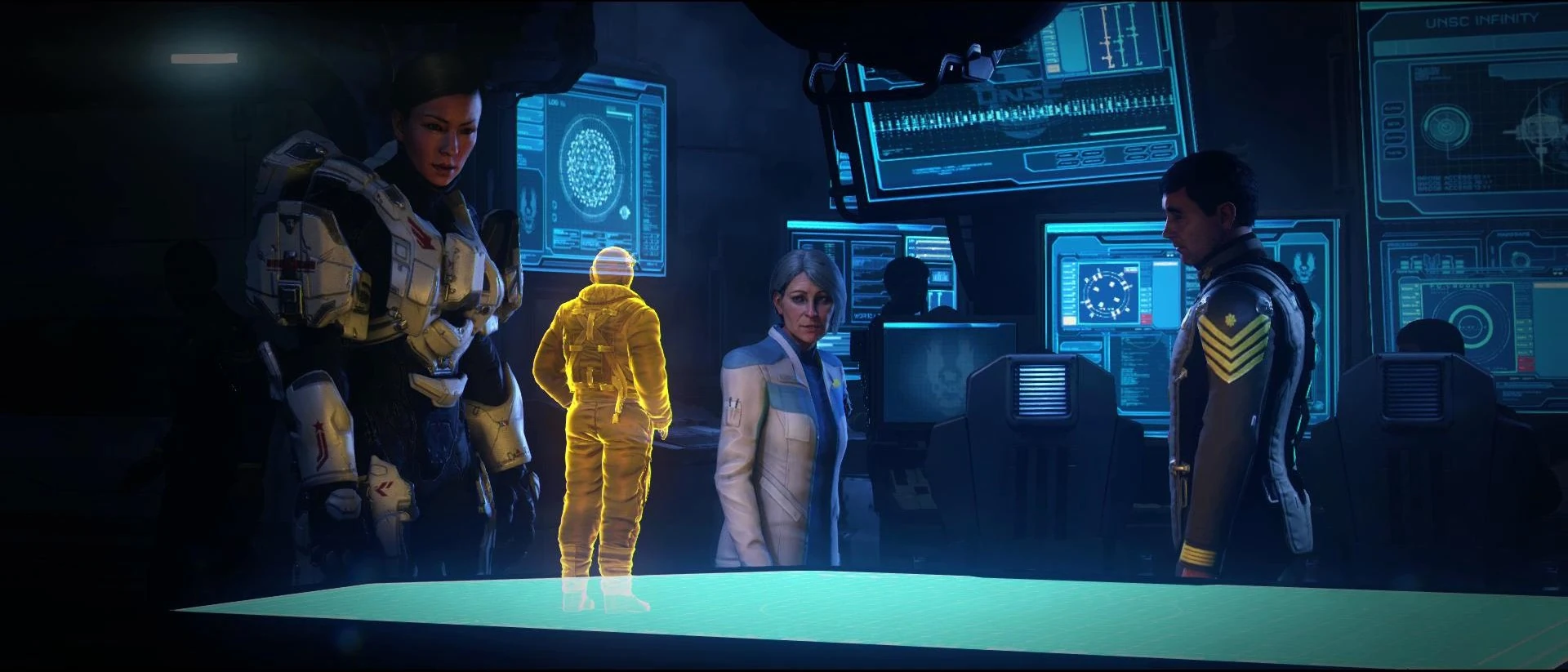 Роланд приветствует Спартанцев отряда "Маджестик" на борту "Бесконечности".