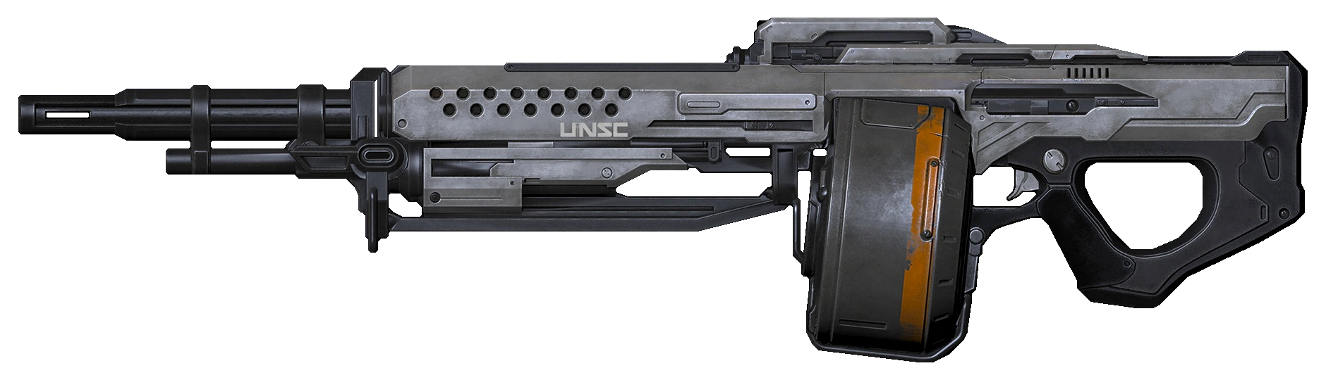 - SAW имеет те же свойства урона, что и штурмовая винтовка в многопользовательской игре Halo 4: 10 выстрелов для отключения щитов и 3 выстрела в тело для убийства. Это фактически делает SAW полной модернизацией штурмовой винтовки с более высокой скорострельностью, более высокой точностью и большей емкостью магазина. Это сходство имеет канонический смысл, поскольку оба оружия используют один и тот же патрон FMJ 7,62 × 51 мм.
