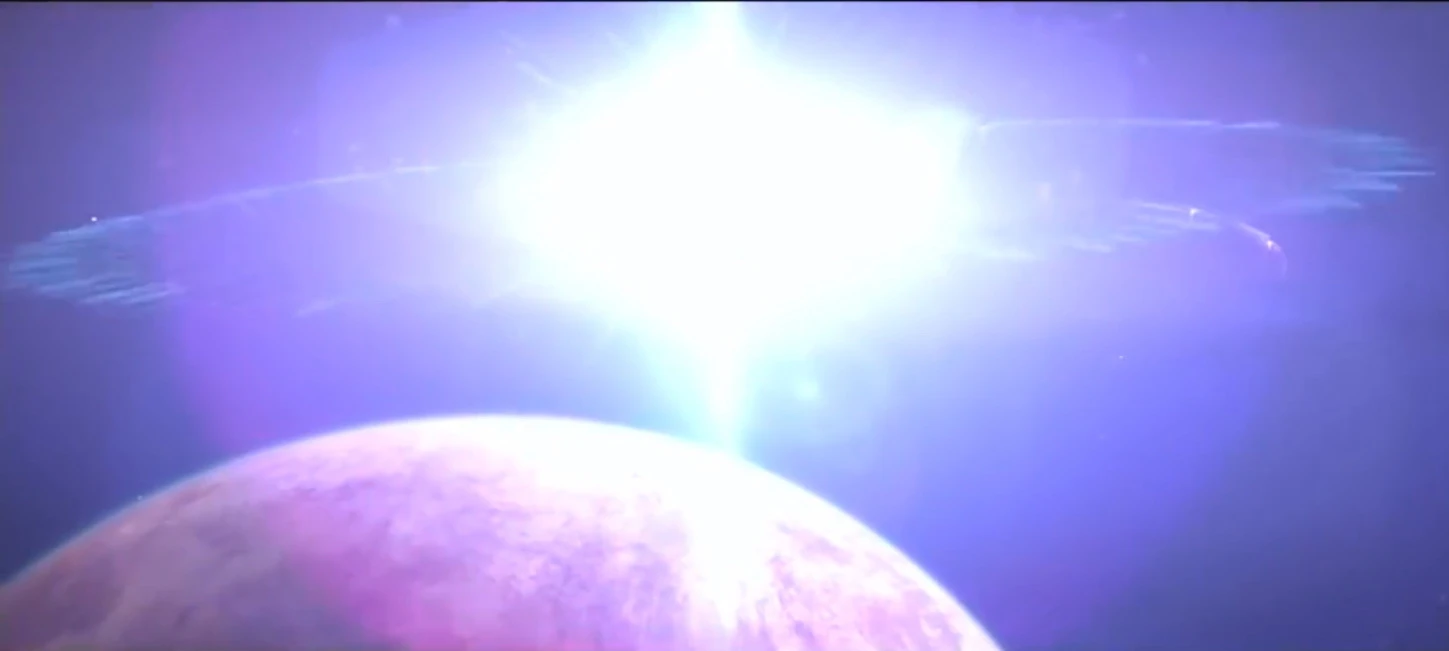 Сэм, Келли и Джон летят по направлению к "Безжалостному", уворачиваясь от выстрелов по "Содружеству".