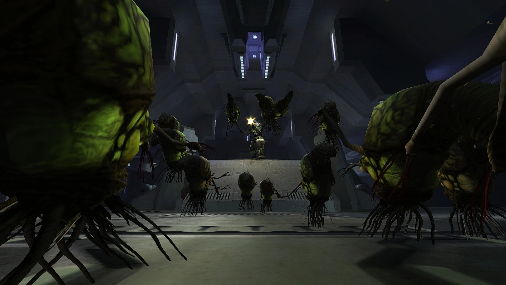 Дверь, через которую Джон-117 попал в комнату, оказывается запертой. Поочередно три других двери вскрываются, и из них появляются десятки инфицирующих форм, все они бросаются на старшину.