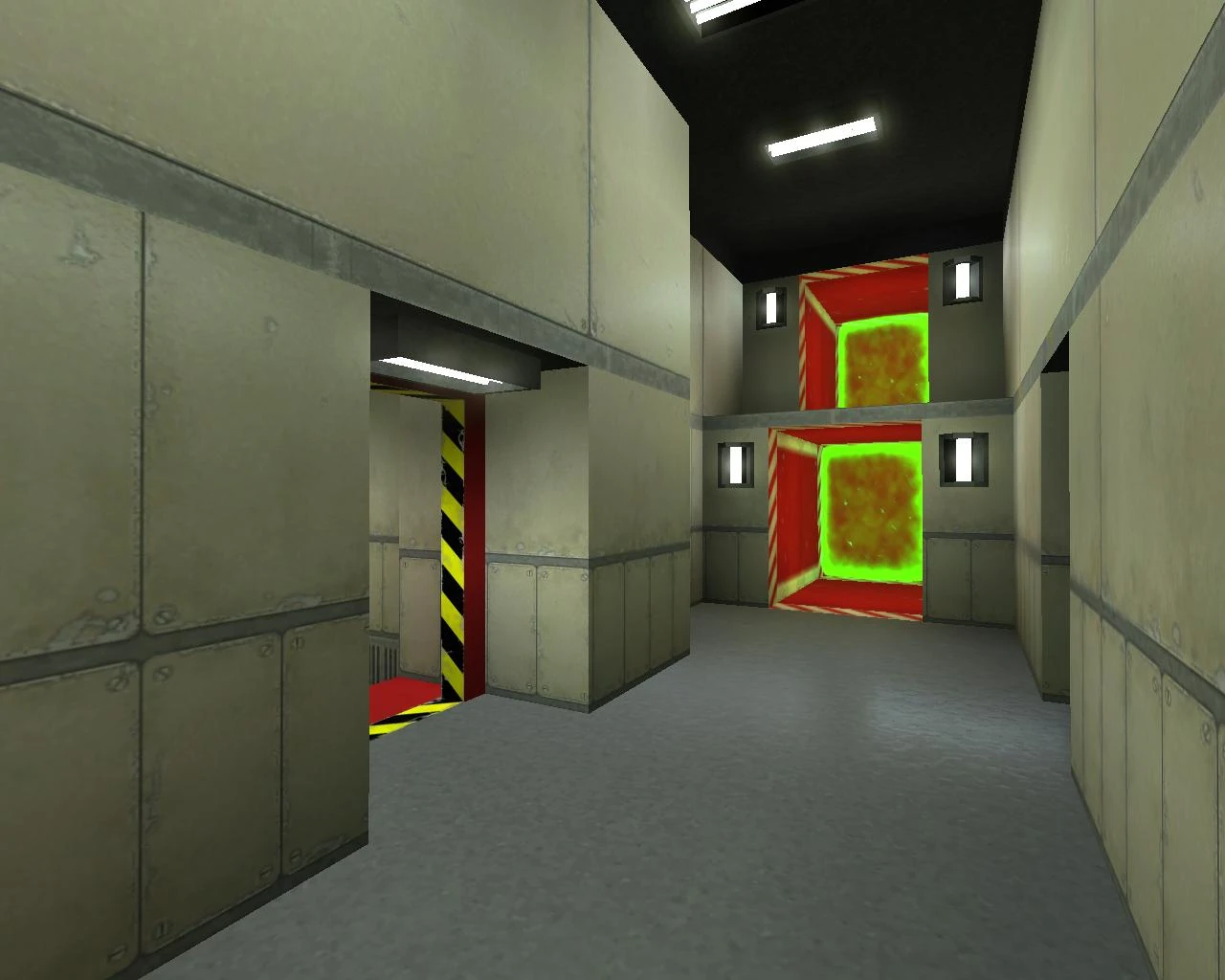 Многопользовательская карта состоит из девяти камер, каждая из которых соединена сетью телепортов. Благодаря асимметричному дизайну, камеры отличаются друг от друга, что требует от игроков умения отличать одну камеру от другой. Каждая камера маленькая и узкая, но в ней есть укрытия и укромные места, где игроки могут контратаковать других игроков. Каждый телепорт находится в конце красного коридора, а каждый красный коридор соединяется с более крупной комнатой, некоторые из которых разделены на коридоры стенами в центре комнаты.