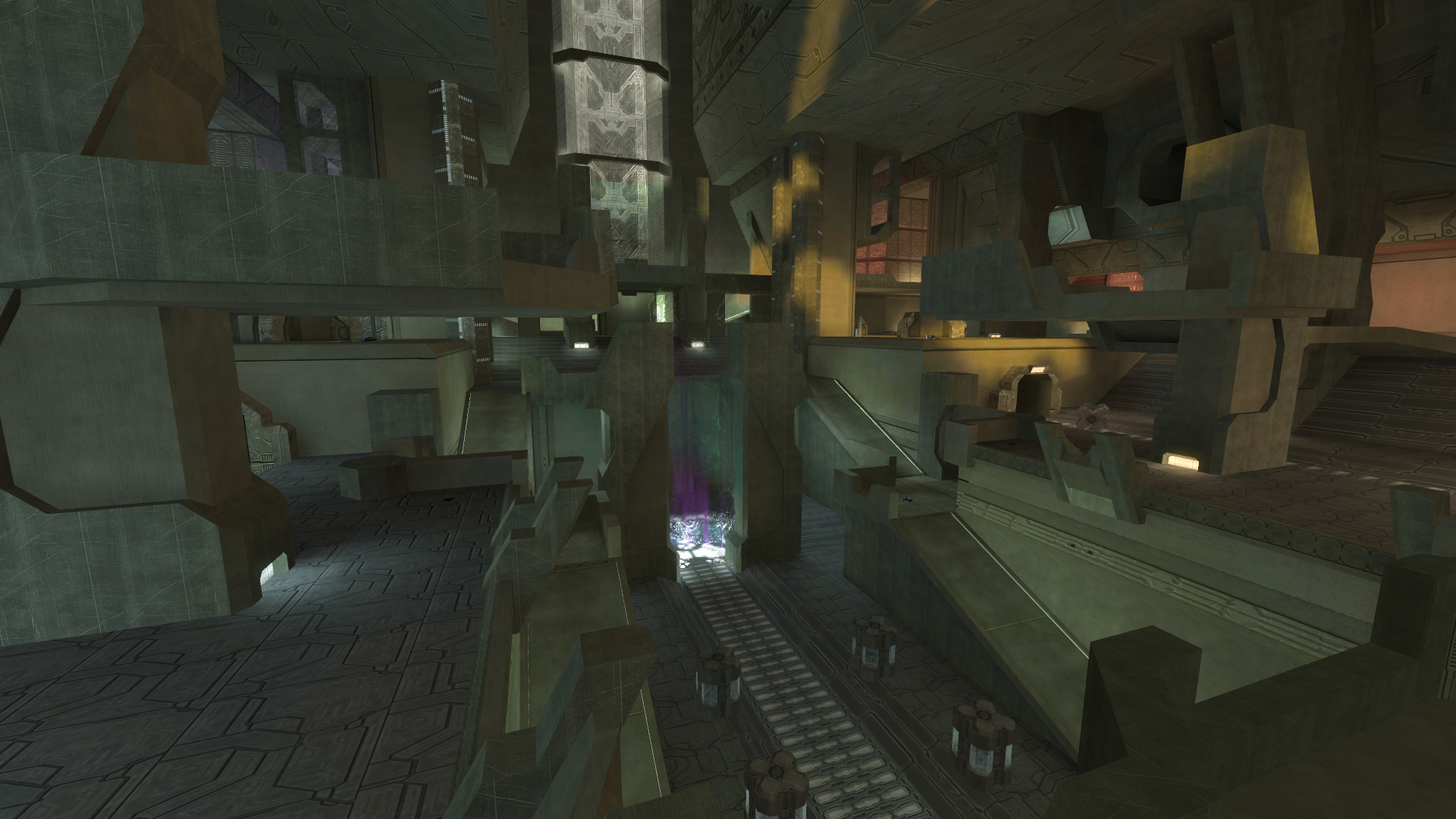 Карта состоит из четырех основных частей. Первая секция — это длинный коридор в середине карты. Здесь вы можете найти щит на самом дальнем пути от гравитационного лифта. Этот длинный коридор представляет собой большое ущелье между красной и синей сторонами карты. Обе стороны вместе с коридором посередине ведут к четвертой части карты, которая является областью рампы. Здесь вы можете найти дробовик в нижней части рампы и лучевую винтовку наверху лифта, который перемещает вас из нижнего коридора в верхнюю часть области рампы.