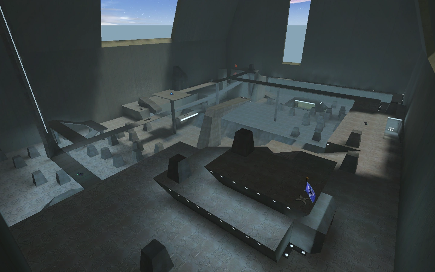 - Если бросить плазменную гранату в одно из множества окон в крыше, она застрянет в воздухе и исчезнет, а не взорвется. Кажется, что границы карты заканчиваются сразу за окнами в крыше.
