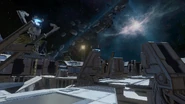 Карта происходит на двух больших серых астероидах, плавающих в космосе. Вокруг них расположены куски поменьше, а на главной скале находится единственное пустое сооружение ККОН. Вокруг карты расположен небольшой «пояс астероидов». Хотя действие карты происходит на небольших астероидах, находящихся в космическом вакууме, здесь присутствует звук и гравитация, подобная земной. На заднем плане карты изображена туманность с одной стороны и разрушающаяся планета с другой. Можно заметить, что над метеоритом плавает круглая голограмма; это не обычный кусок космического камня.