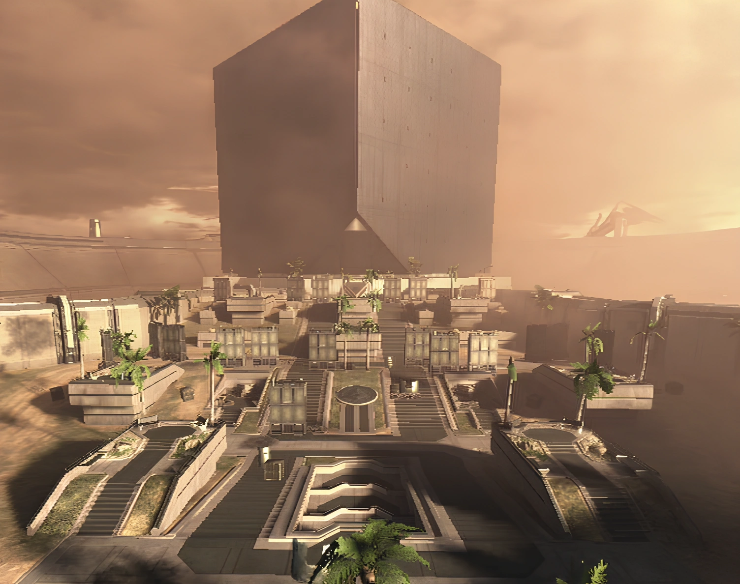 Действие карты происходит во внутреннем дворе Альфа-зоны Управления военно-морской разведки в городе и описывается как карта среднего размера со снайперскими винтовками и турелями, расположенными высоко, с центральной долиной, предназначенной для перенаправления врагов. В середине игры на этой карте будут появляться Привидения, хотя их захват на этой карте отключен по соображениям баланса. Снайперская винтовка появляется на скамейке рядом с турелью, приподнятой платформой, справа от главной лестницы рядом с местом появления. Спартанский лазер появляется практически в той же позиции, что и снайперская винтовка, за исключением того, что слева от начальной позиции. Осколочные гранаты, пистолеты-пулеметы с глушителем, магнумы с глушителем и ракетная установка появляются сбоку от игрока на стене снаружи здания.
