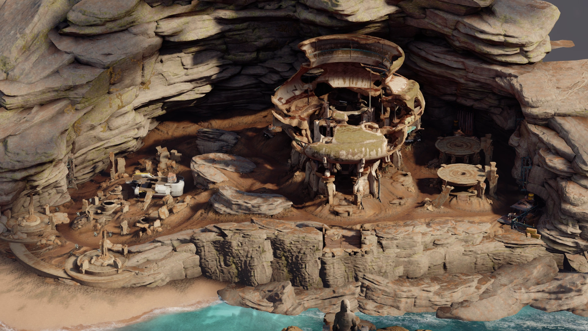 На карте представлены две основные структуры. Одна часть находится в нижней части карты, на восточной стороне. Другая, более крупная структура находится в центре карты. На западной стороне карты находятся две посадочные площадки. Карта достаточно открытая и отлично подходит для стрельбы на дальние и средние дистанции. Структуры создают несколько локаций ближнего боя.
