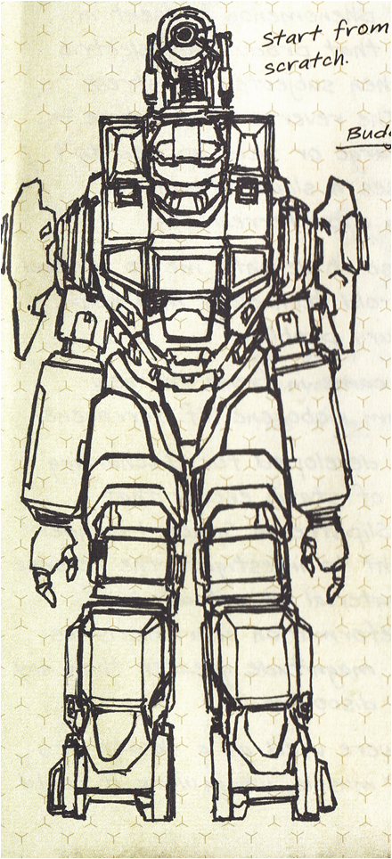 The next prototype, the Mark III, incorporated a wireless power transmitter and receiver so that power could be transmitted directly to it, much like the Orbital Defense Platforms used to defend UNSC colonies. This design was quickly rejected for two reasons: first the armor still had a limited operational range as it had to remain within range of a bulky, immobile generator, and second, if the generator was to be knocked out it would result in the incapacitation of the suit and leave its user locked inside and helpless against enemy attacks. In the end, all of the first three prototypes had one thing in common: They were impractical on the battlefield, as large exoskeleton units did not have a substantial use in any form of combat.