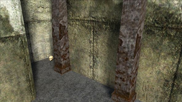 - Position yourself within the piece of corridor looking out towards the skull.