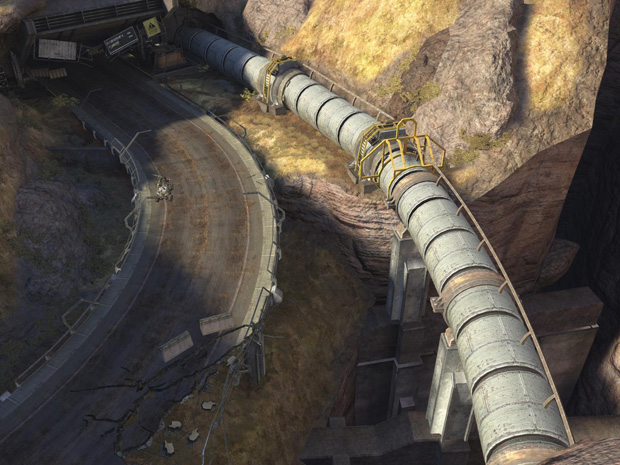 - On your way to the barracks, you will come across a section in the level where you are required to drop down into a shaft. At the bottom are several pipe entrances where Drones fly out of. Reaching the bottom will initiate a Cortana Moment.