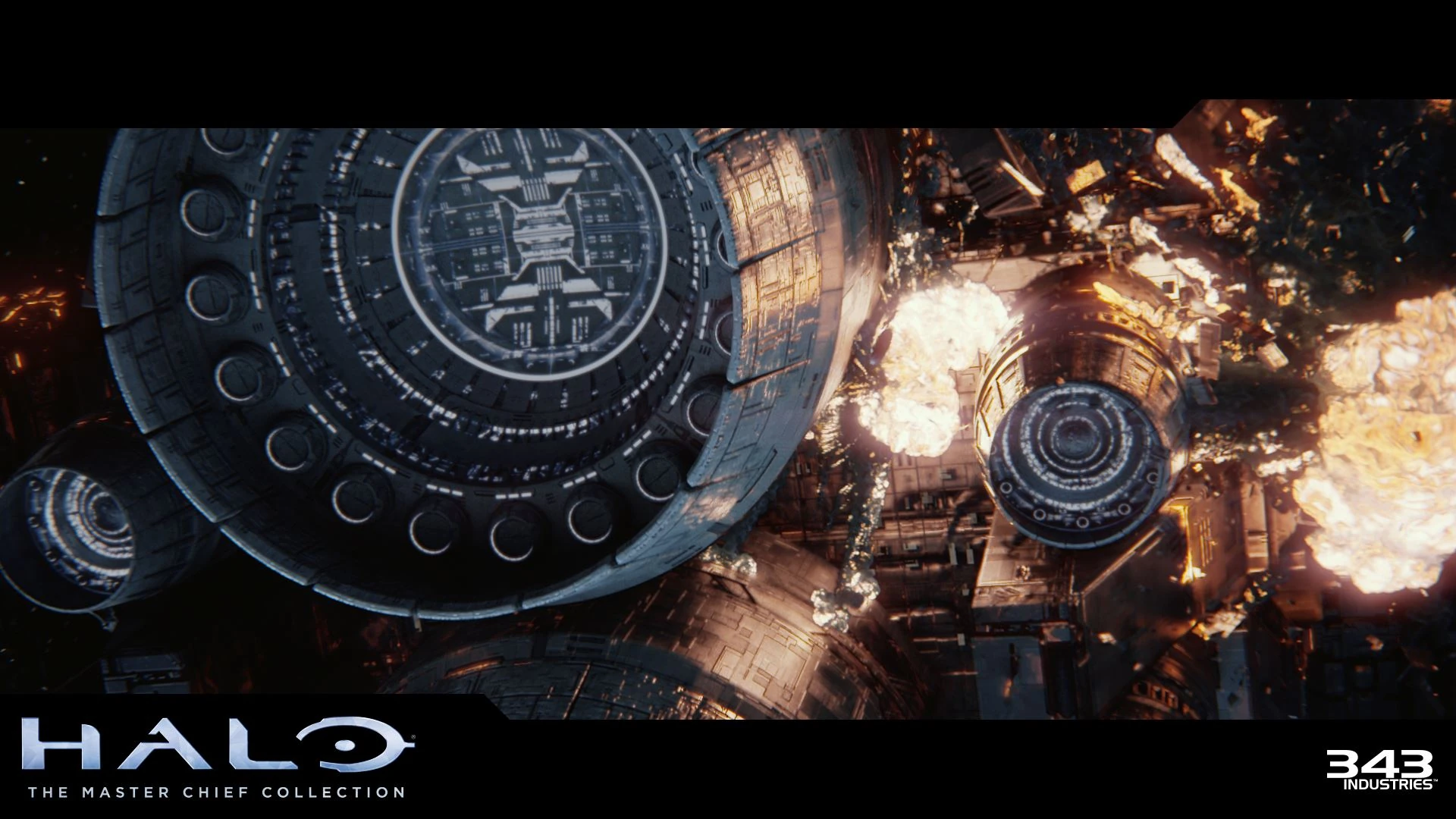 John-117 rises from his chair and moves to one of the Longsword's windows. Halo has broken into a few dozen large fragments, all of which are slowly spinning away from each other. As John watches, one massive fragment comes swiftly from the far side of the ring and collides with another, closer one, splitting it in half, and the two go spinning off in a giant gout of fire and debris. Silent explosions spread throughout Halo's remains. The ring has been destroyed.