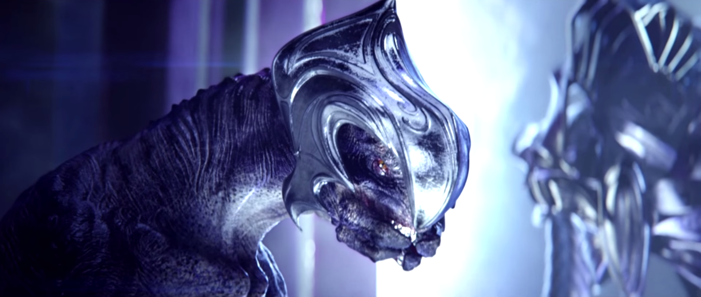 'Vadamee about to receive the Arbiter's armor, with the Prophets nearby.