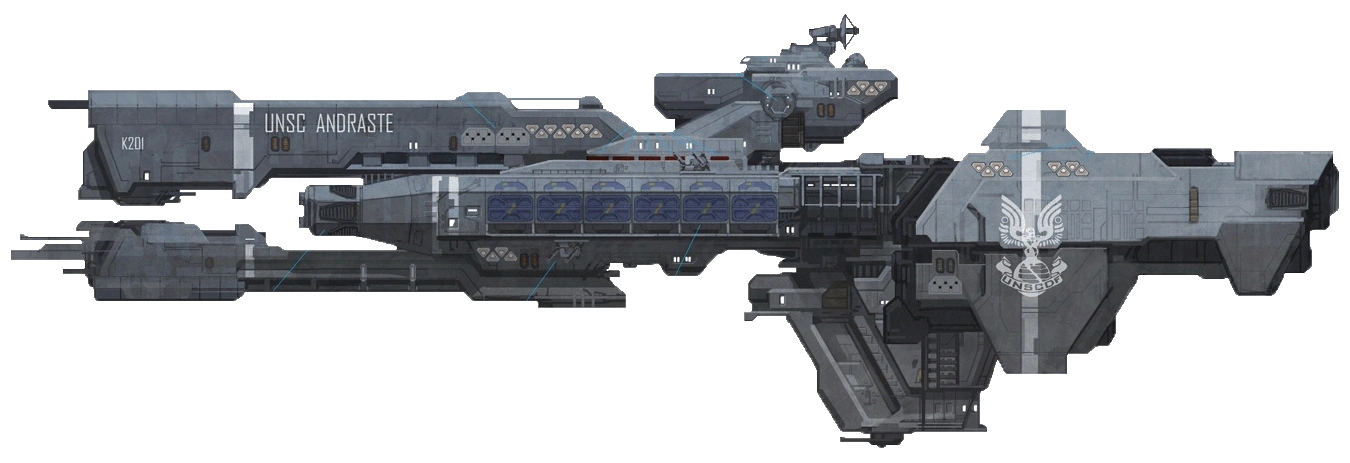 The UNSC Andraste (K-201) was a UNSC warship featured in concept art for Halo 3, from The Art of Halo 3.[1] The ship had a Hull Classification Symbol which identified it as a corvette. Its design eventually evolved into the Charon-class light frigate seen in the final game, and seems to be the basis of the Paris-class heavy frigate design featured in Halo: Reach.